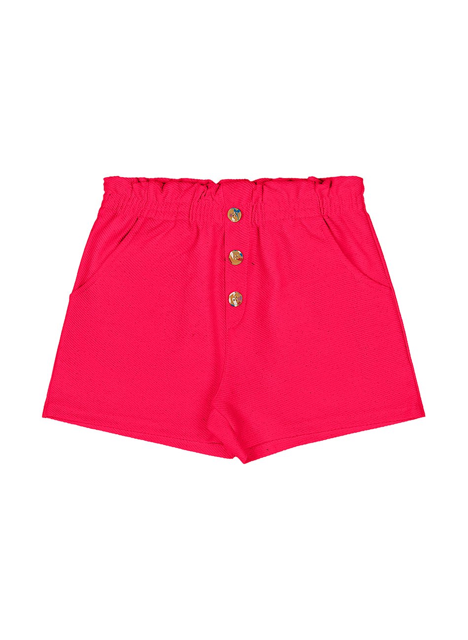 O shorts possui dois bolsos laterais práticos, que permitem que as meninas carreguem pequenos objetos com facilidade. O detalhe de botões na frente adiciona um toque de charme e sofisticação, tornando o shorts ainda mais atraente. Além disso, o elástico na barra garante um ajuste confortável e seguro, proporcionando liberdade de movimento para as atividades diárias.