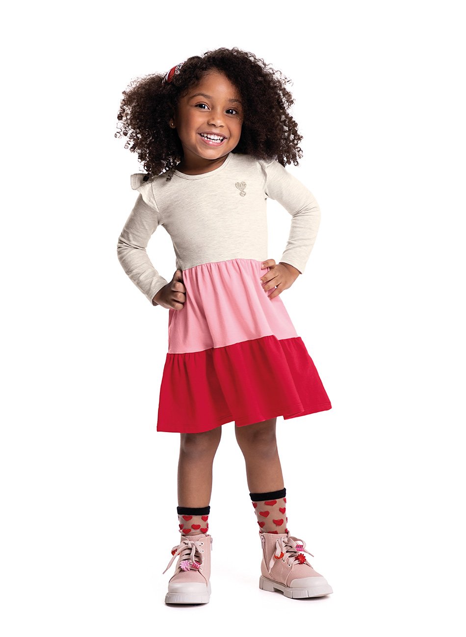 Vestido manga longa em 3 marias. Cotton com elastano, excelente caimento com recortes franzidos. Detalhe nas mangas em babadinho.