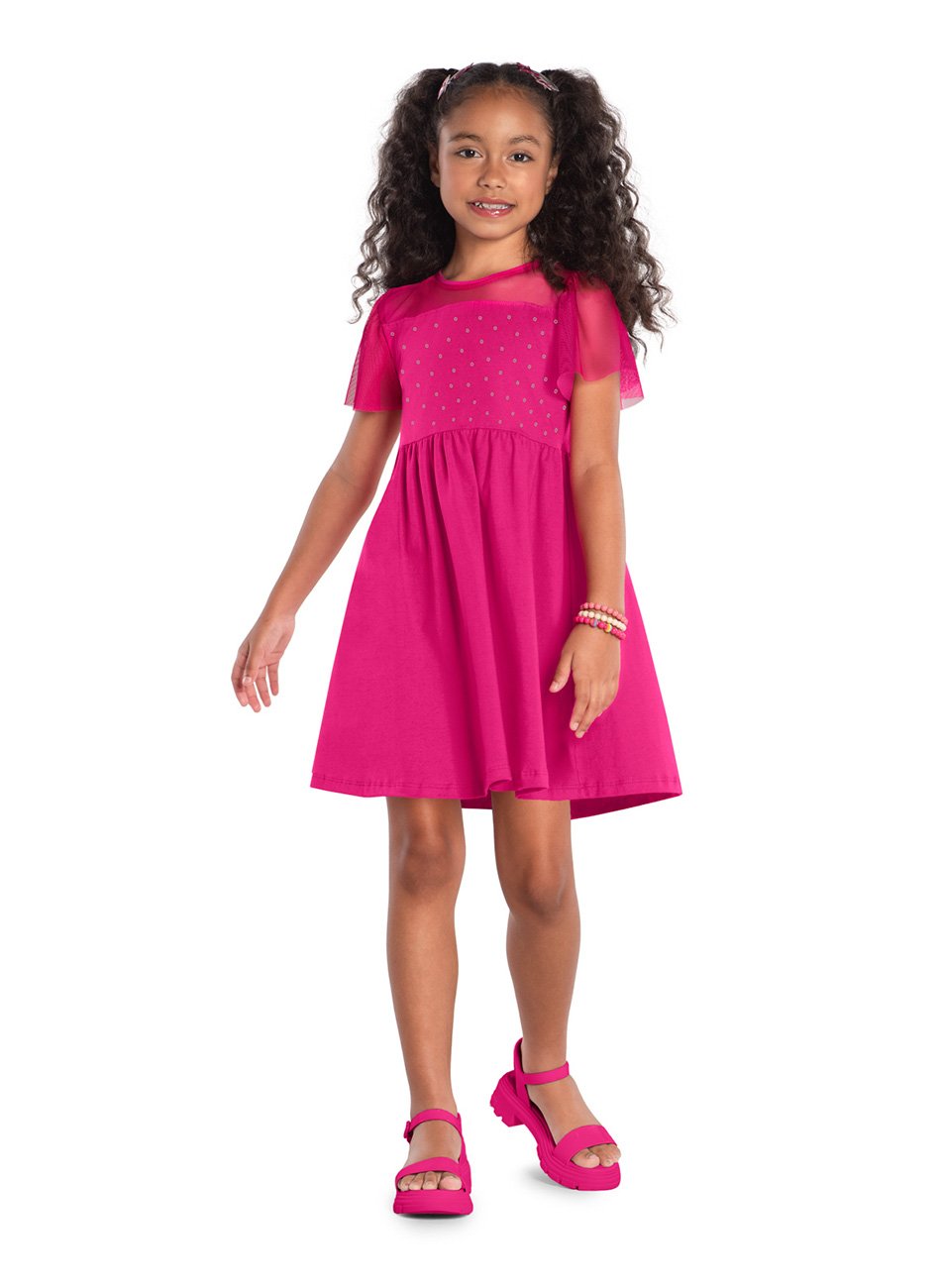 Vestido em Cotton com Detalhes em Tule Infantil Menina - Kyly é a escolha perfeita para criar um look sofisticado e confortável para sua pequena. Este vestido é confeccionado em cotton de alta qualidade, oferecendo um toque macio e respirável que garante conforto ao longo do dia. O design encantador é realçado com detalhes em tule, que adicionam uma camada de elegância às mangas e à gola, conferindo um visual delicado e moderno.