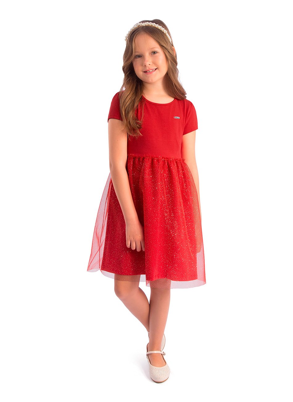 Vestido Infantil Feminino Duduka em Cotton com Tule é a escolha ideal para vestir sua menina com charme e sofisticação em momentos especiais.