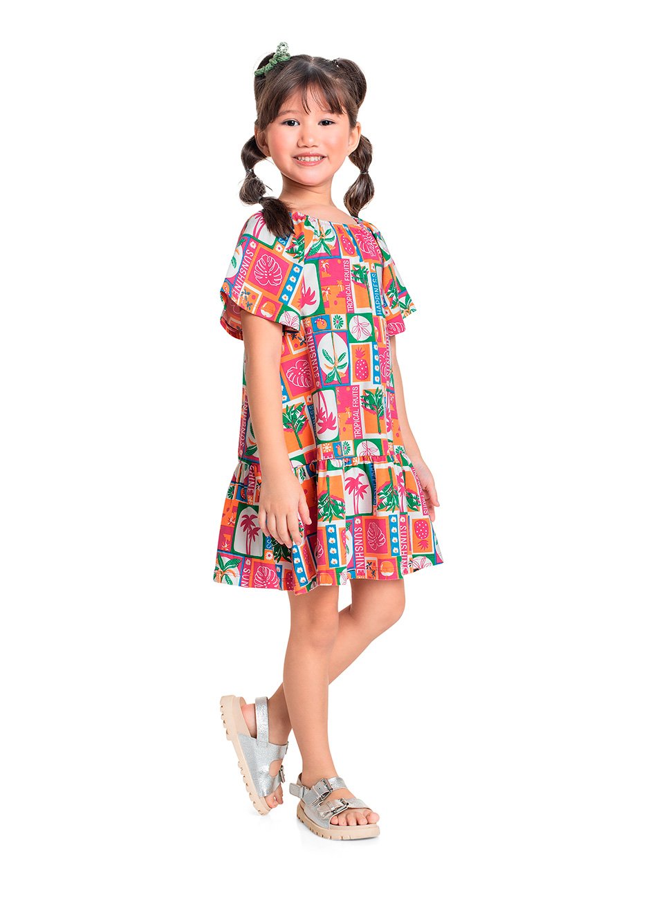 O Vestido Infantil da Bee Loop foi criado para oferecer às meninas uma experiência de moda infantil com muito conforto e estilo. Feito em cotton 100% algodão, este vestido apresenta o que há de melhor em tecido de algodão penteado, proporcionando uma sensação de maciez na pele, ideal para as temperaturas mais quentes do verão. A estampa rotativa em cores vibrantes capta a essência da estação e encanta as pequenas com um toque divertido e alegre.