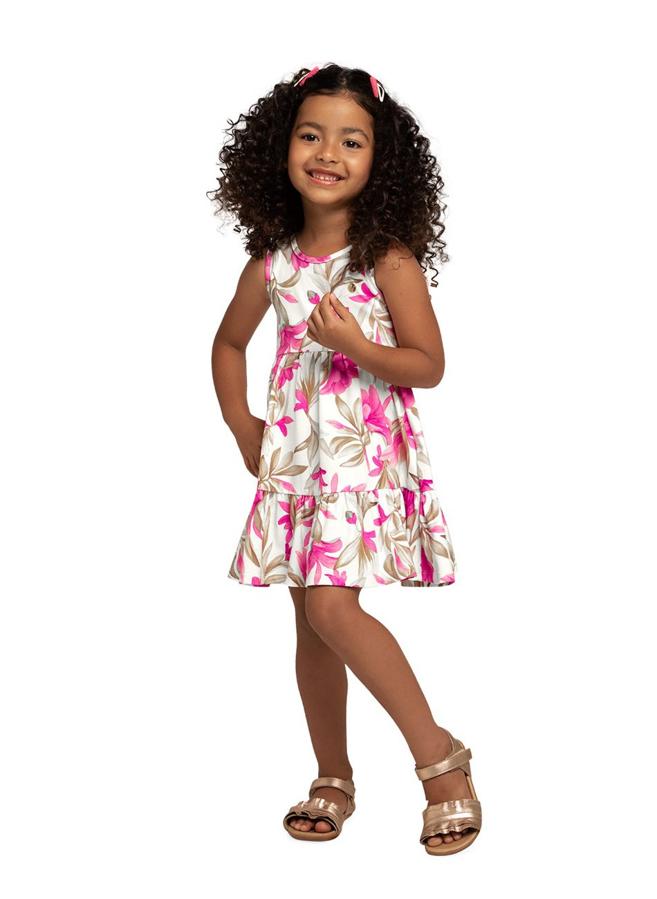 Confeccionado em cotton de alta qualidade, este vestido proporciona um toque suave e agradável à pele, garantindo que sua pequena se sinta à vontade durante todo o dia. A estampa rotativa dá um toque especial e diferenciado ao vestido, tornando-o ideal tanto para ocasiões casuais quanto para eventos especiais.