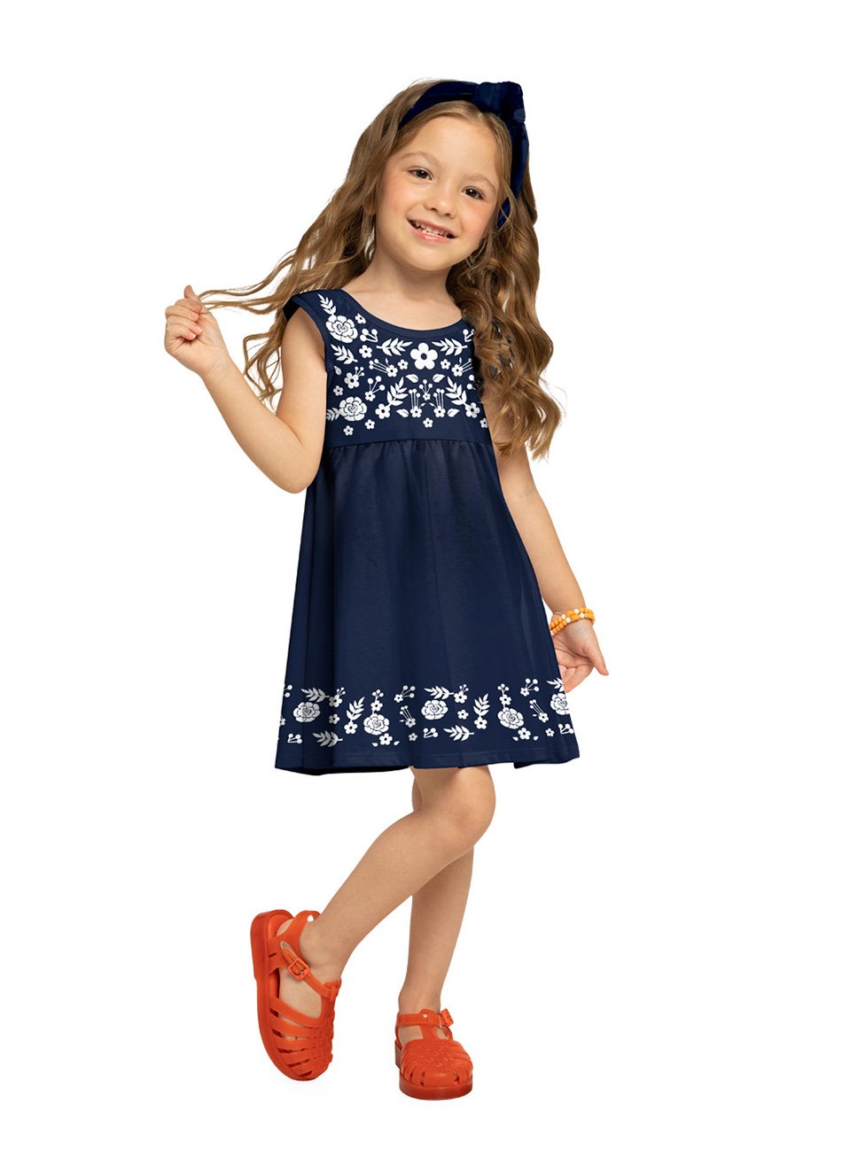 Com uma estampa rotativa exclusiva, o vestido garante um visual moderno e único, tornando cada peça especial e cheia de personalidade. O design inclui alças em regata que proporcionam liberdade de movimento e ventilação, garantindo que a criança se sinta confortável e fresca durante todo o dia.