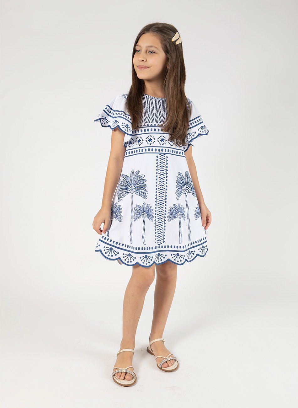 Com uma estampa rotativa moderna e delicada, o vestido traz um visual encantador, perfeito para meninas que adoram se vestir com personalidade. O detalhe das mangas com babado adiciona um toque sofisticado e feminino, tornando a peça ainda mais charmosa e especial.