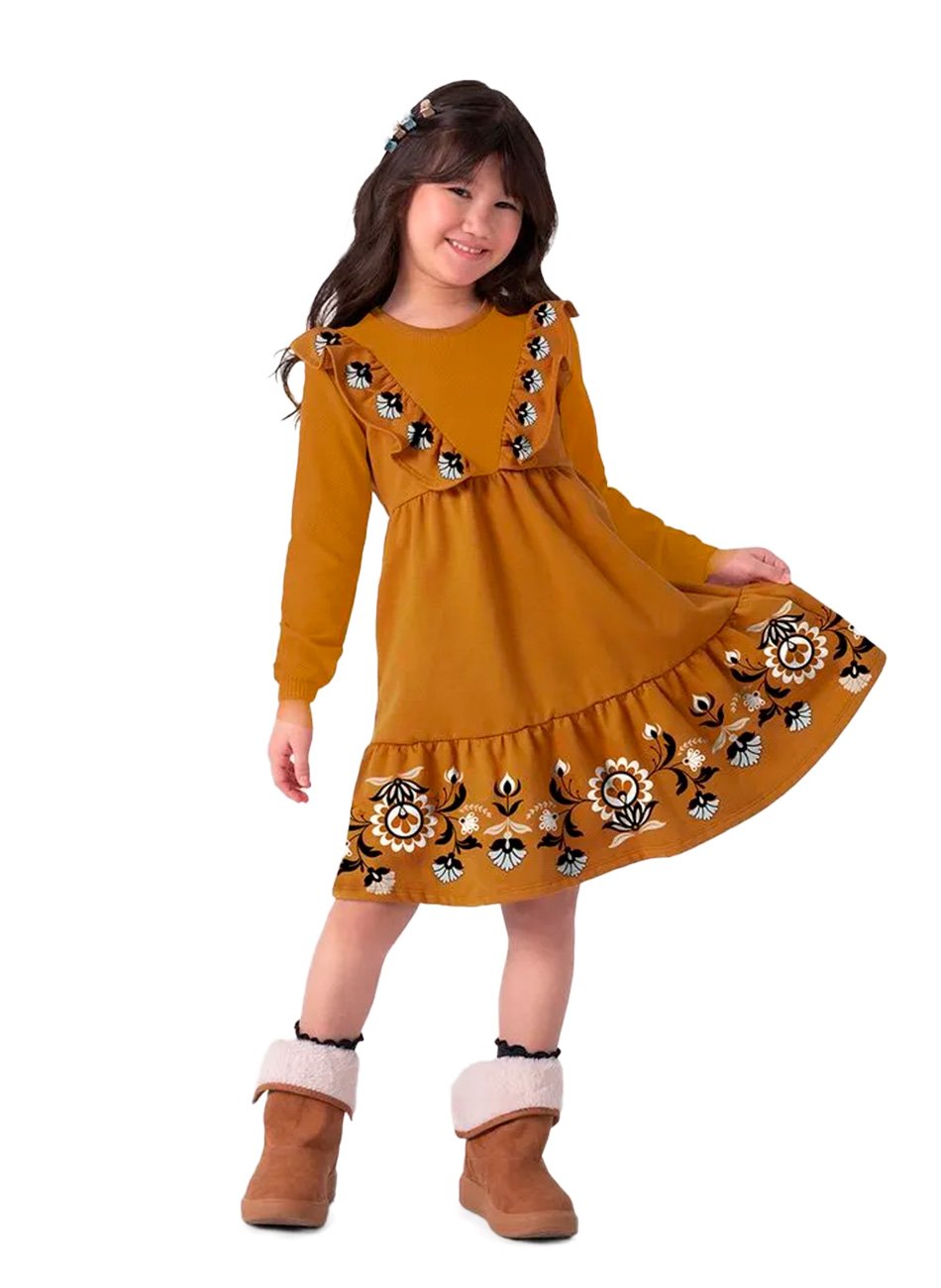 A estampa rotativa é um destaque à parte, trazendo um visual único e encantador à peça. Cada vestido possui uma estampa exclusiva, tornando-o ainda mais especial para sua pequena. Os detalhes de estampa localizada adicionam um toque único e personalizado, tornando o vestido ainda mais especial. As mangas longas são ideais para proteger sua filha em diferentes estações, proporcionando conforto e estilo em qualquer situação.