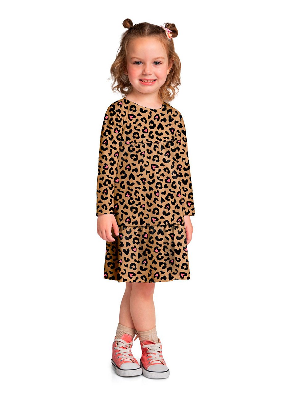 A estampa rotativa é um destaque à parte, trazendo um visual único e encantador à peça. Cada vestido possui uma estampa exclusiva, tornando-o ainda mais especial para sua pequena. As mangas compridas são ideais para proteger sua filha em diferentes estações, proporcionando conforto e estilo em qualquer situação.