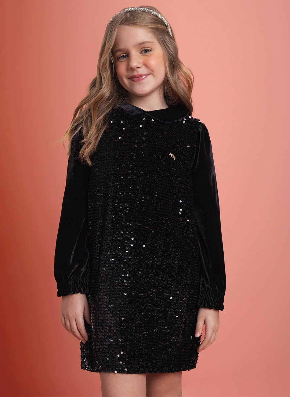 Vestido Infantil Menina Veludo Paetê e Veludo da marca Milli e Nina. Este vestido encantador foi cuidadosamente confeccionado para oferecer um visual sofisticado e um toque suave na pele da sua pequena.