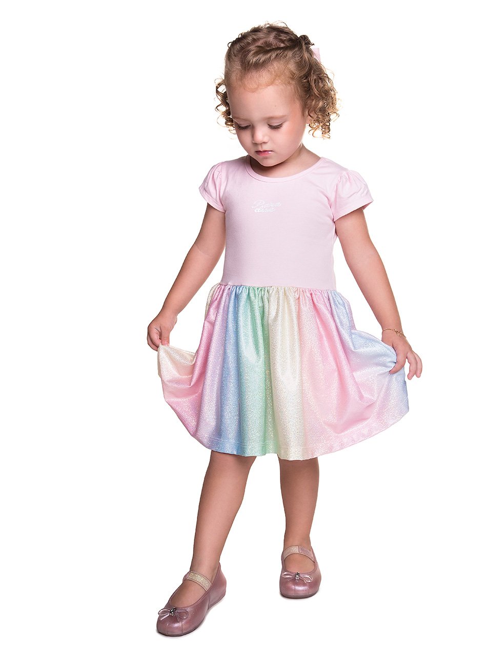 Seu design encantador destaca-se pela estampa rotativa colorida, que cobre toda a peça com alegria e estilo. Com padrões criativos e vibrantes, o visual se torna único e especial, ideal para ocasiões casuais, passeios em família ou até eventos escolares. Cada vestido é uma pequena obra de moda, pensada para celebrar a espontaneidade da infância.