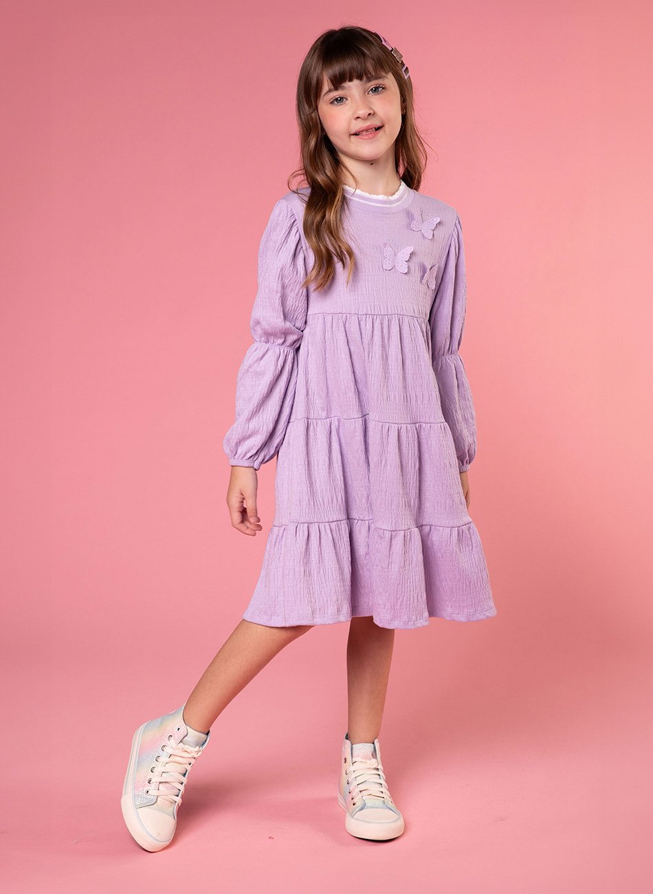 Vestido manga longa Kukiê em malha elastic. Super leve e macio ao toque, com bastante elasticidade e resistencia e toque texturizado/enrrugado.