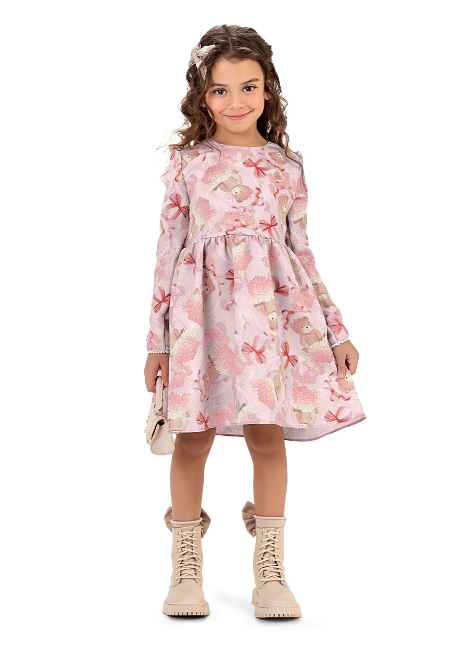 Vestido Infantil Menina - Glinny é a combinação perfeita de estilo e conforto para a sua pequena. Este vestido encantador apresenta detalhes de fita de pompom na barra, trazendo um toque divertido e moderno que faz toda a diferença no look. A estampa rotativa oferece um visual dinâmico e único, com diferentes padrões a cada movimento, deixando o vestido ainda mais especial. A peça possui mangas longas, garantindo conforto e proteção em temperaturas mais amenas.