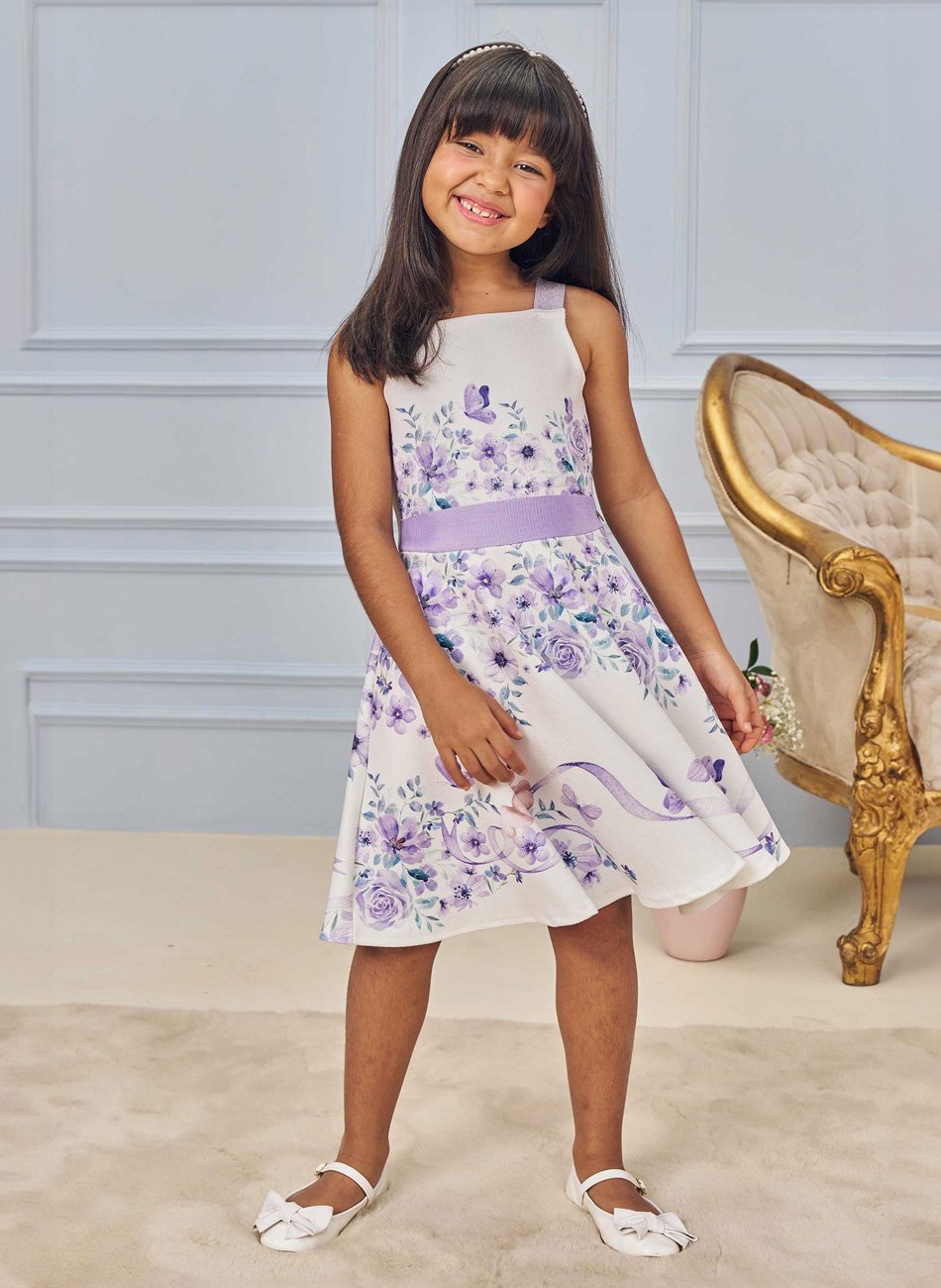 Além disso, o vestido conta com uma faixa na cintura, que não só ajuda a ajustar o vestido perfeitamente ao corpo, como também acentua a silhueta da criança, proporcionando um visual harmonioso e elegante.