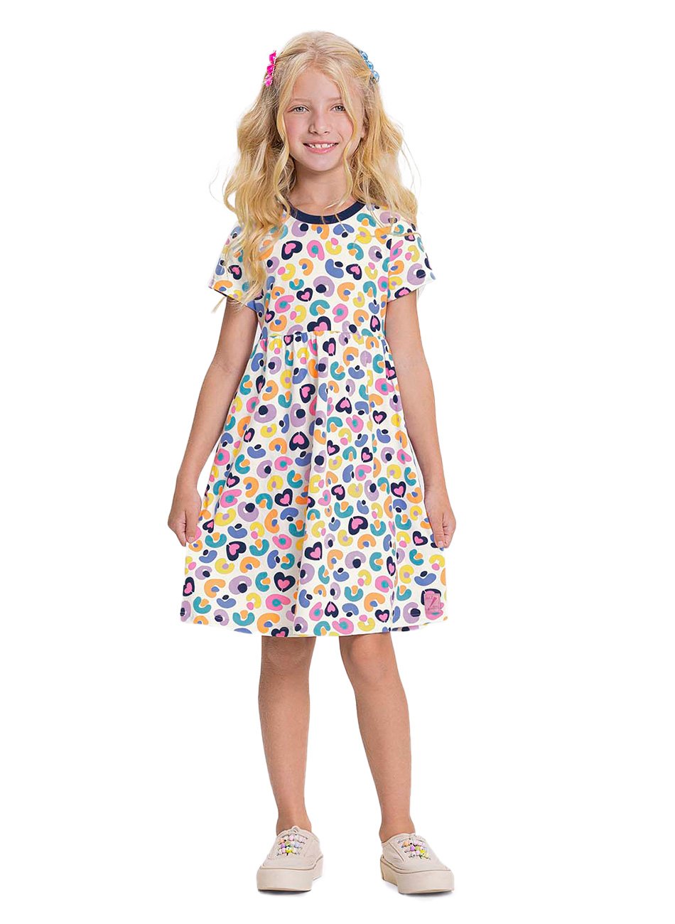 Vestido Meia Malha Penteada Infantil Menina - Alakazoo combina estilo e conforto em uma peça versátil e encantadora. Confeccionado em meia malha penteada, o vestido oferece um toque suave e confortável, ideal para o dia a dia ativo das meninas. A peça apresenta uma estampa rotativa vibrante e cheia de personalidade, cobrindo toda a extensão do vestido com desenhos criativos e alegres, tornando-o perfeito para diversas ocasiões, desde passeios até momentos de lazer.