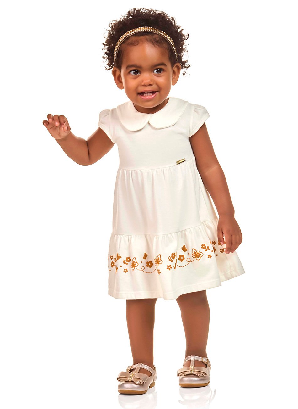 A estampa rotativa do vestido, com detalhes puff, traz um visual diferenciado e moderno, criando um efeito visual em relevo que chama a atenção. As cores vibrantes e os detalhes em puff transformam o vestido em uma peça alegre e cheia de personalidade, perfeita para meninas que adoram se destacar. Além disso, a gola boneca dá um toque clássico e delicado ao look, adicionando uma pitada de elegância à peça.