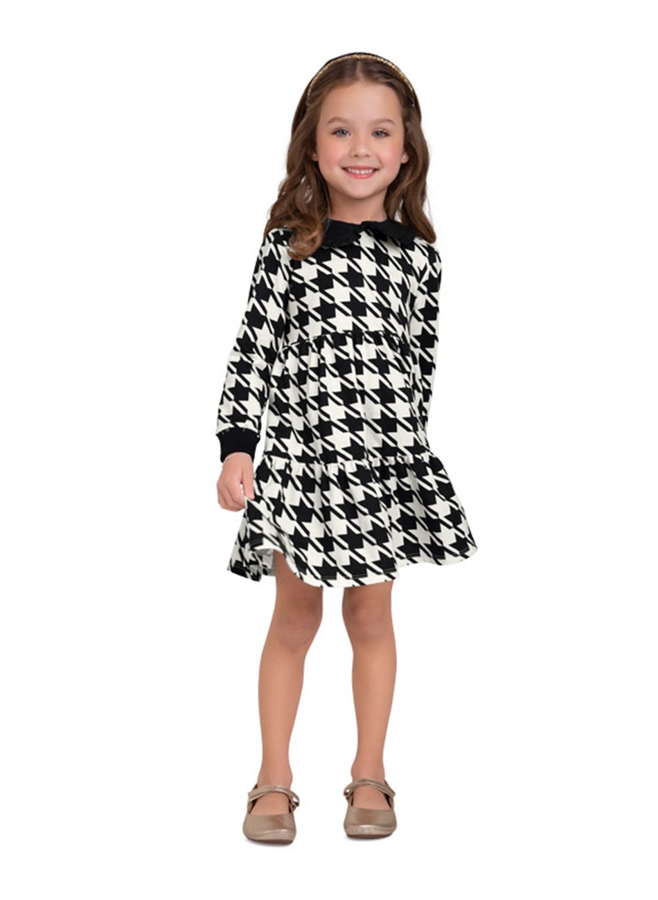 Destacando-se pelos detalhes delicados, este vestido apresenta uma gola em molde dupla com babados duplos, proporcionando um visual elegante e cheio de estilo. O verso da gola em gota, com fechamento em elástico roliço, adiciona um toque de sofisticação ao conjunto. As mangas com franzidos na altura dos ombros e o punho da manga em retilínea dupla garantem um ajuste confortável e seguro, permitindo que sua pequena se movimente com facilidade. Os recortes com franzido na altura do peito e da cintura criam uma silhueta moderna e charmosa, enquanto a barra em bainha proporciona um acabamento impecável.