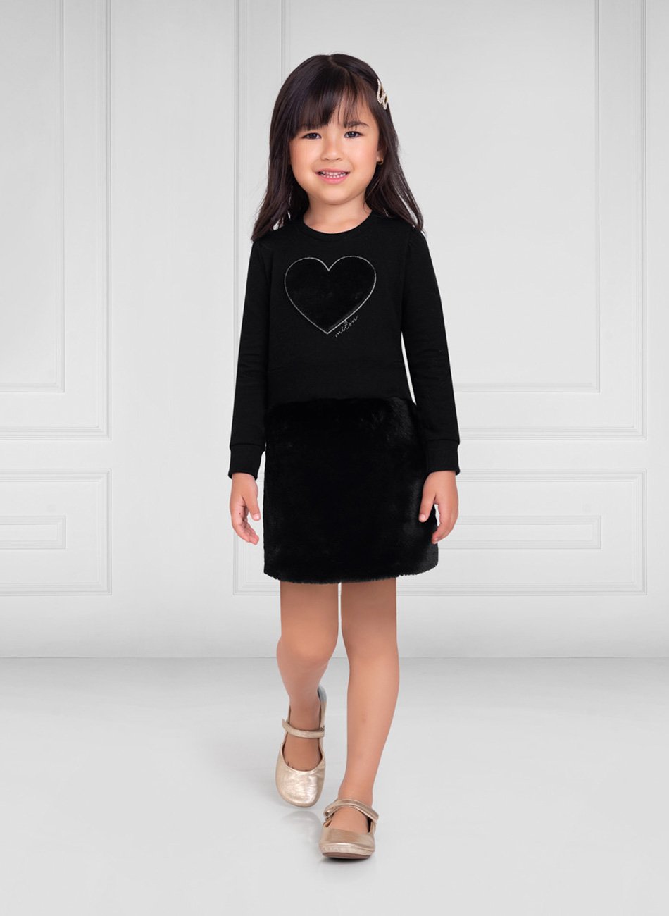 Feito em molicotton de alta qualidade, composto por 96% algodão e 4% elastano, este vestido proporciona uma sensação suave e macia ao toque, garantindo liberdade de movimento para que sua pequena possa brincar o dia todo. A saia em pelo, fabricada em 100% poliéster, adiciona um toque de elegância ao conjunto, tornando-o perfeito para diversas ocasiões.