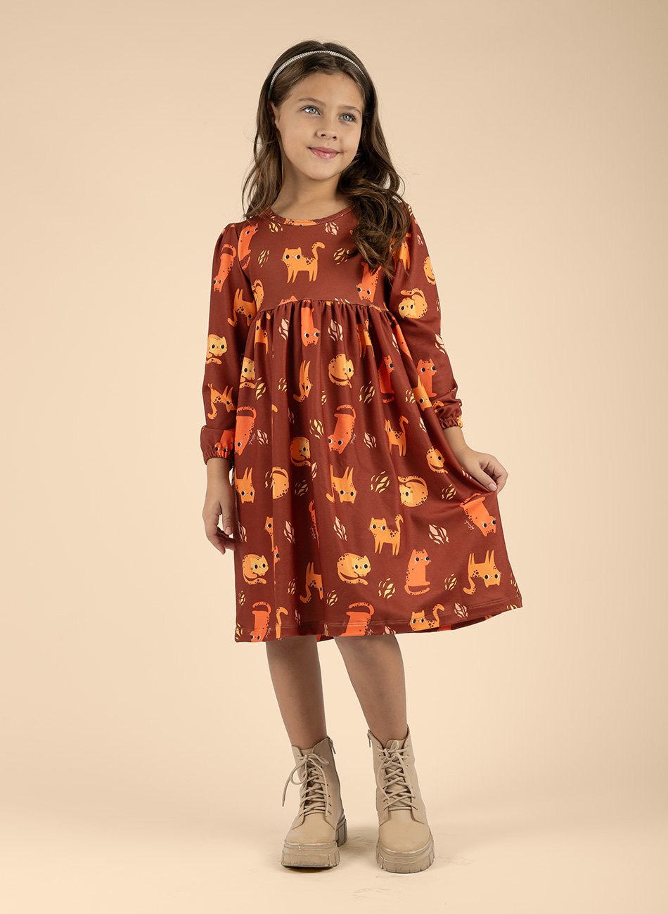 Vestido em molecotton com excelente caimento. Não amassa com facilidade e possui ótima elasticidade. Possui estampa rotativa e recortes franzidos. Detalhe com elástico nas mangas.