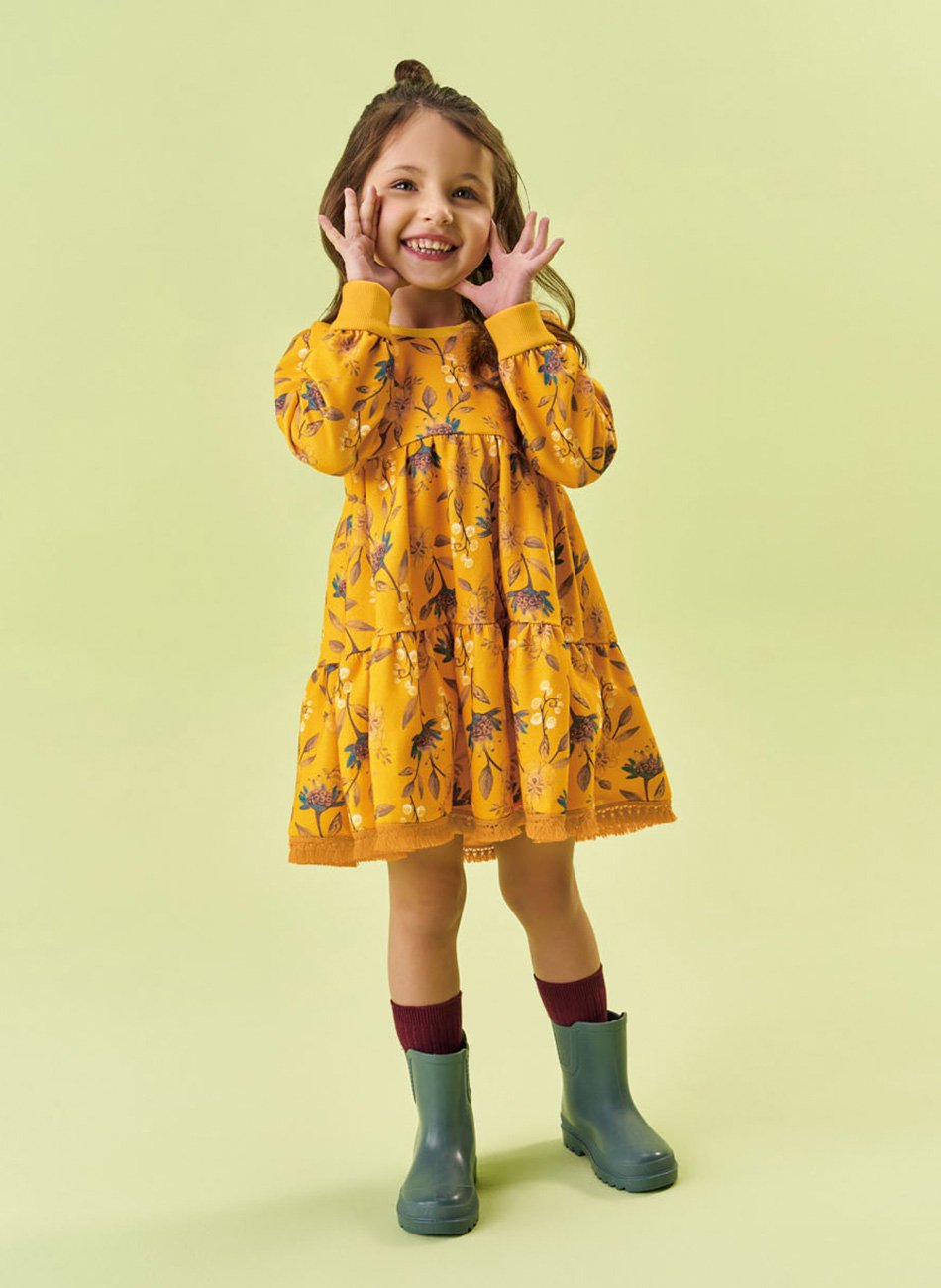 Vestido Infantil em Moletom Menina Nanai, uma peça que une charme e conforto para as pequenas.